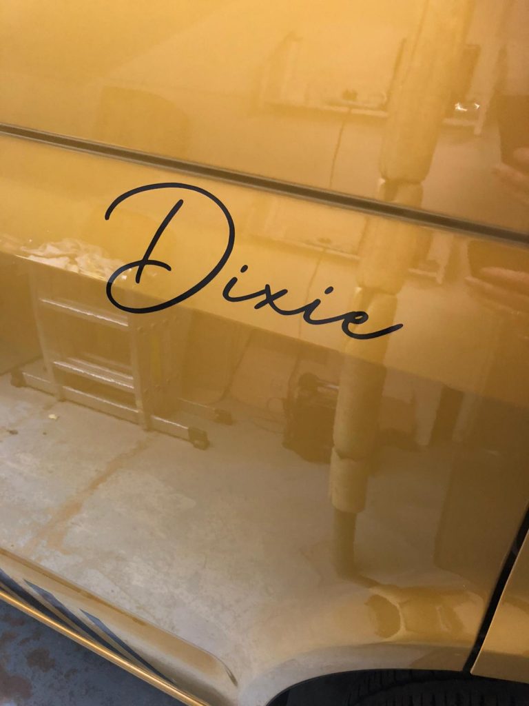 I have to say that mechanically/technically I don’t know my **** from my elbow ( there I admit it ) which is why myself and the other half are a dream team, I love selling the dream, dealing with customers, trouble shooting but Wilkie Senior has been a life saver with his knowledge and ability to calm me down and help get Dixie ready! My customers are everything! and I will climb mountains for you all to make sure your Campervan experience is the best EVER! So you are in good hands road trippers, we pull it out the bag! Ok so I look like I live in my car with the cleaning equipment, pots and pans in the back, bedding, doggy biscuits..but I have to make clear this has been a HUGE team effort, and I thank everyone from the bottom of my rum glass, a couple to mention ( No Oscar speech coming ) Aztec Signs, Burnett Design, Kendal Camping, and my Dad! and of course a MASSIVE thanks to Lakeland Windscreens for all their late nights and putting up with the nag bag on the phone! Think they had me on caller ID…